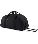 600D polyester. Padded hand grip.Detachable adjustable shoulder strap with pad.Haul handle.Retractable locking tow handle.Lockable main zip.Zip pouch pocket.Compression straps.Durable integrated skate wheels.Capacity 105 litres.