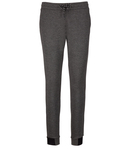 79% polyester/15% viscose/6% elastane. Slim fit.Elasticated waistband with two tone drawcord and plastic tips.Two side jersey lined pockets.Rear zip pocket.Elasticated leg ends.