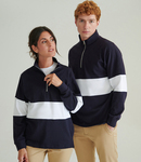 100% ringspun cotton. Heavyweight single jersey.Self fabric funnel neck.Herringbone taped neck and side vents.Topstitching around neck, armholes and panels.Metal zip and puller.Contrast stripe panel across chest and sleeves.Elastane reinforced ribbed cuffs.Side vents.Drop tail.Twin needle stitching.Tag free.