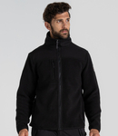 100% recycled polyester. Borg fleece with poly/elastane soft shell upper body and lower arm panels.H2OShield DWR finish to soft shell panels.Fleece lined inner collar.Full length zip with inner zip guard.Left chest zip pocket.Underarm odour control patches.Two front zip pockets.Bound elasticated cuffs and hem.
