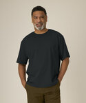 Iconic mid-light unisex t-shirt. Relaxed fit. Set-in sleeve. 1x1 rib at neck collar. Inside back neck tape in self-fabric. Twin-needle topstitch at sleeve cuff and hem.